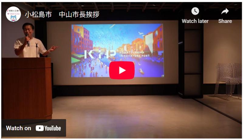 「KIP」は、本連携協定に基づき立ち上げたコンソーシアムにより発足しました。KIPは起業・創業支援のイノベーター創出プログラムを実施しており、今回、本プログラムのキックオフイベントを開催しました。キックオフイベントでは、小松島市の中山市長より、本プログラムの採択者の方々への激励の言葉が送られ、また、採択者の皆さまからは、事業への意気込みを語っていただきました。